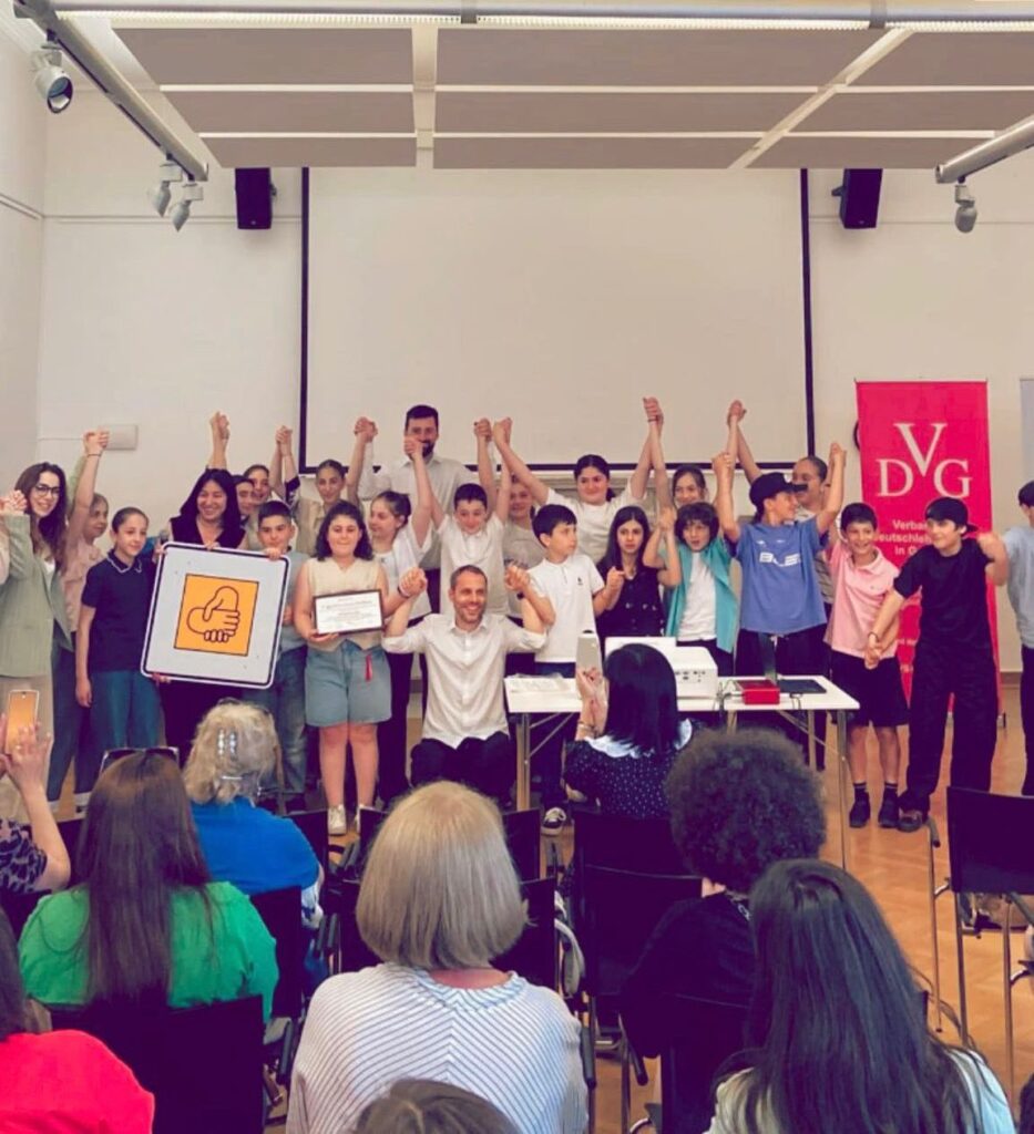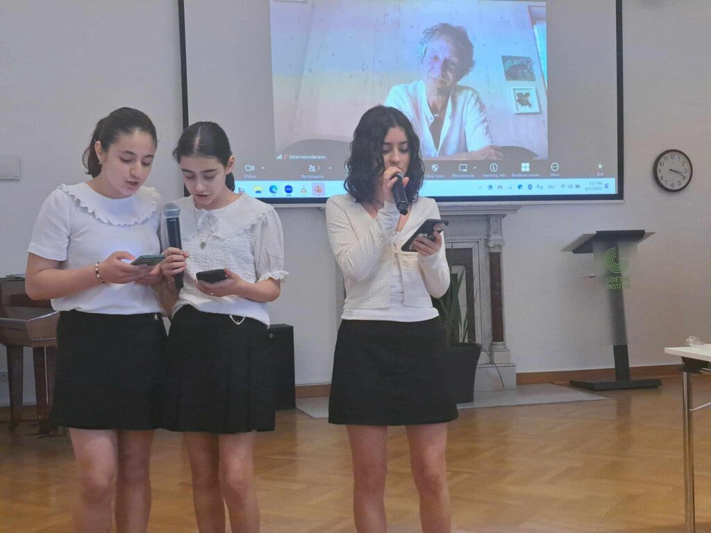 Auf Initiative und unter Organisation des DVG ( Deutschlehrerverband-Georgien) fand mit Unterstützung des Goethe-Instituts Georgien eine Siegererhebung für die drei Gewinnerschulen im Saal des Goethe-Instituts statt.